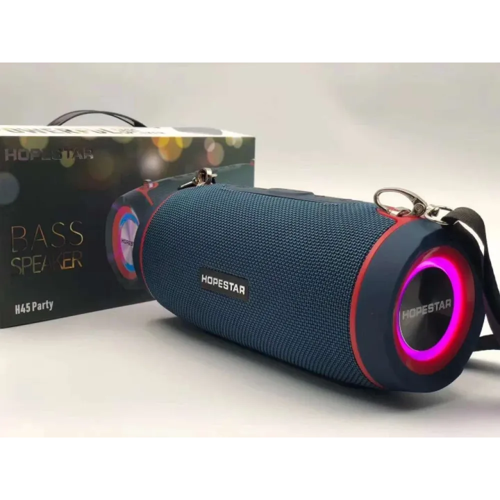 Оригинальная Bluetooth колонка Hopestar Н45 Party – это колонка популярной серии Hopestar , с яркой и динамичной светомузыкальной подсветкой динамиков. Это наличие двух мощных (по 10 Вт) стерео динамиков. Так же, по бокам колонки расположены подвижные пассивные излучатели с логотипом HOPESTAR. И, как у модных сейчас колонок JBL, они выглядят эффектно и впечатляюще, визуально подчеркивая глубину звучащих басов и делающая звук еще более объёмным.