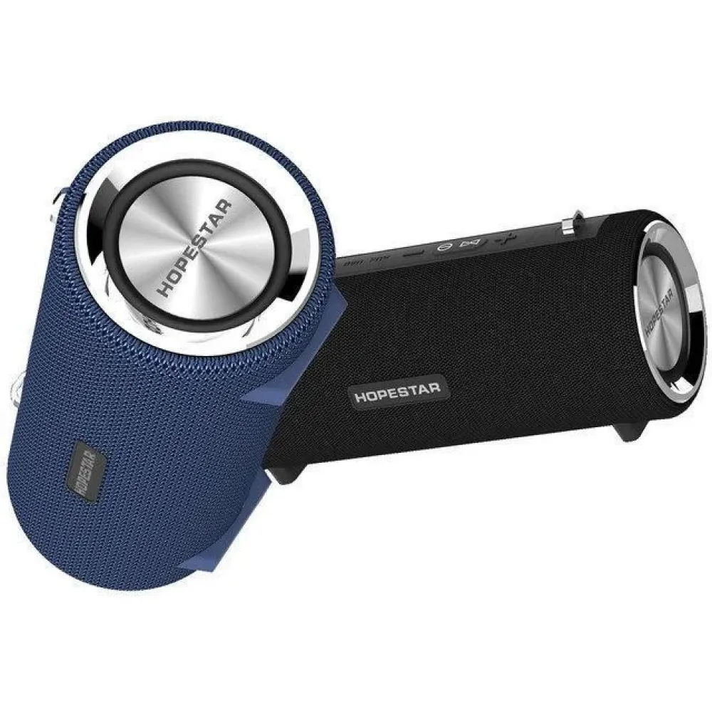 Портативная акустическая стерео колонка Hopestar H39 - это оригинальная брендовая Bluetooth колонка с стильным современным дизайном, в пыле-влагозащищенном корпусе и с великолепным насыщенным звуком. В колонке разместилось 2 динамика размером 57 мм по 5 Вт, которые выдают отличный звук для довольно компактных размеров колонки. По бокам колонки расположены подвижные низкочастотные мембраны с лого HOPESTAR, и как у модных сейчас колонкок от JBL, выглядят эффектно и впечатляюще, визуально подчеркивая глубину звучащих басов. Звучит Hopestar H39 громко и чисто, все частоты сбалансированы, нет запирания баса или середины, пронзительных высоких нот, музыка всех стилей звучит максимально натурально.