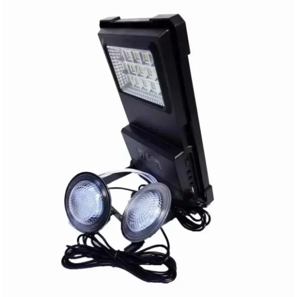 Портативная зарядная станция GDLITE GD-07А · Солнечная панель с аккумулятором · Светодиодный фонарь и две лампочки 30 W