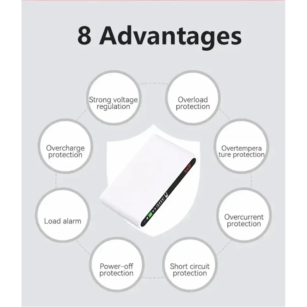 SKE POE-532E предлагает широкий диапазон выходных напряжений, включая 5V, 9V, 12V и поддержку POE на 15V и 24V, что делает его универсальным решением для большинства цифровых устройств. Встроенные функции защиты от чрезмерной зарядки, разрядки, короткого замыкания и перегрузки по току обеспечивают безопасность и долговечность устройства. Это идеальный выбор для тех, кто хочет сохранить непрерывность работы своей техники и защитить ее от повреждений, связанных с перебоями в электропитании.