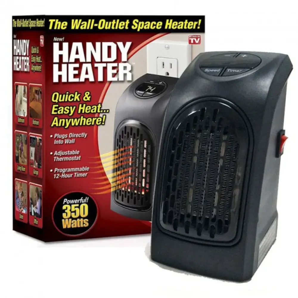 С приходом холодов, когда еще не включили отопление, мы часто сталкиваемся с тем, что в доме очень холодно. Тогда со шкафа достаются теплые вещи или же включаются обогреватели, которые используют много электроэнергии. Теперь решение найдено. Электрообогреватель Handy Heater 400W решит данную проблему. Это идеальный прибор для межсезонья, который включается в розетку на стену, плотно фиксируется в ней и не имеет шнуров. Такой обогреватель хоть и компактных размеров, но быстро обогреет помещение и не пересушит воздух. Его можно использовать в любой комнате дома, как в спальне, так и в гостиной, в гараже, в офисе, а также брать с собой в поездки.