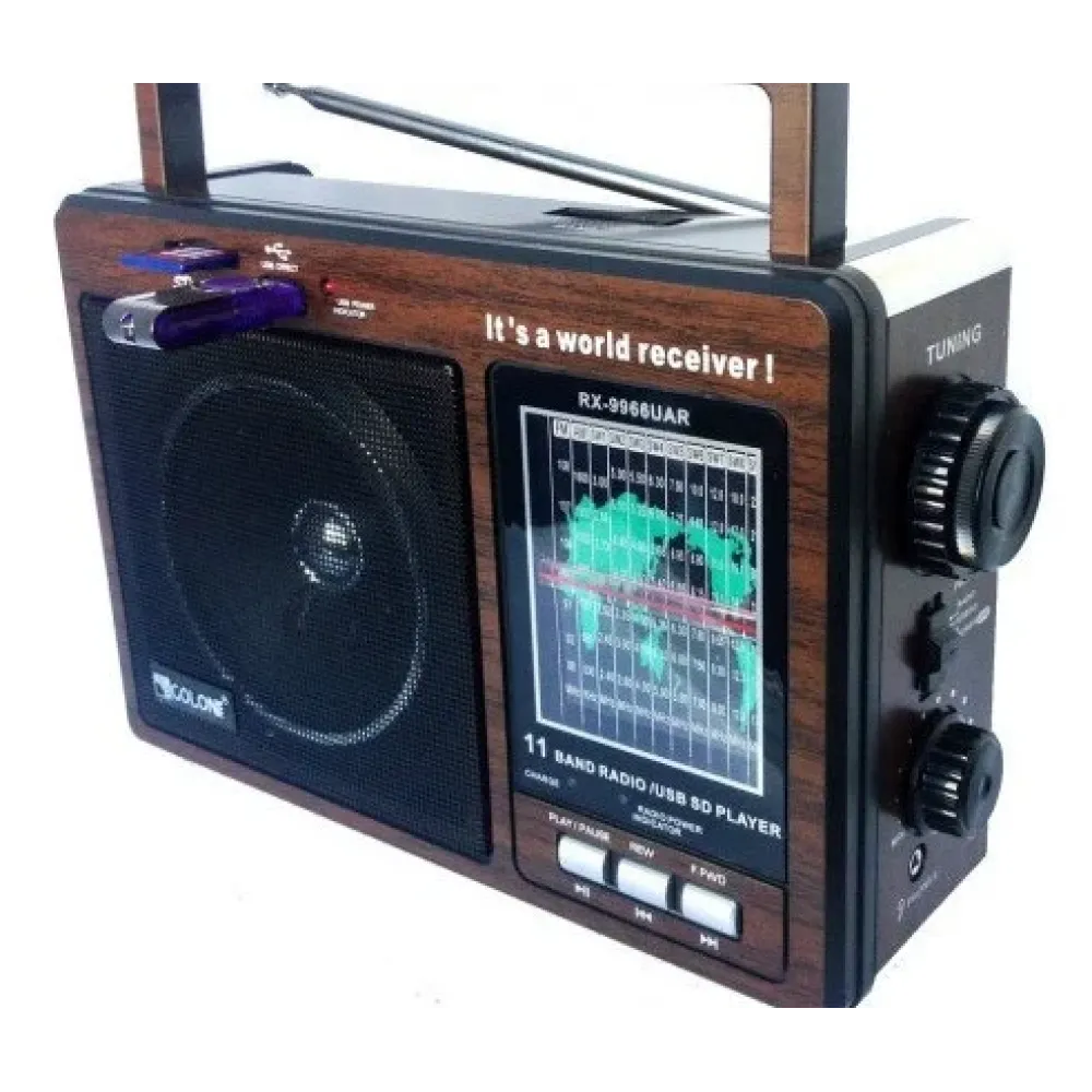 Портативная аккустическая система GOLON RX-9966UAR, с простым, механическим управлением, громкий звук, FM/AM/SW1-9, работает от сети, встроенный аккумулятор, работает без подзарядки до 8часов, поддержка MP3 формата.