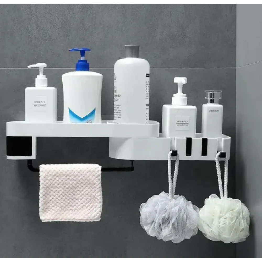 Эта полочка очень вместительная. Вы без труда разместите большие емкости гелей для душа и шампуней, эфирные масла, различные очищающие средства, лосьоны и многое другое.