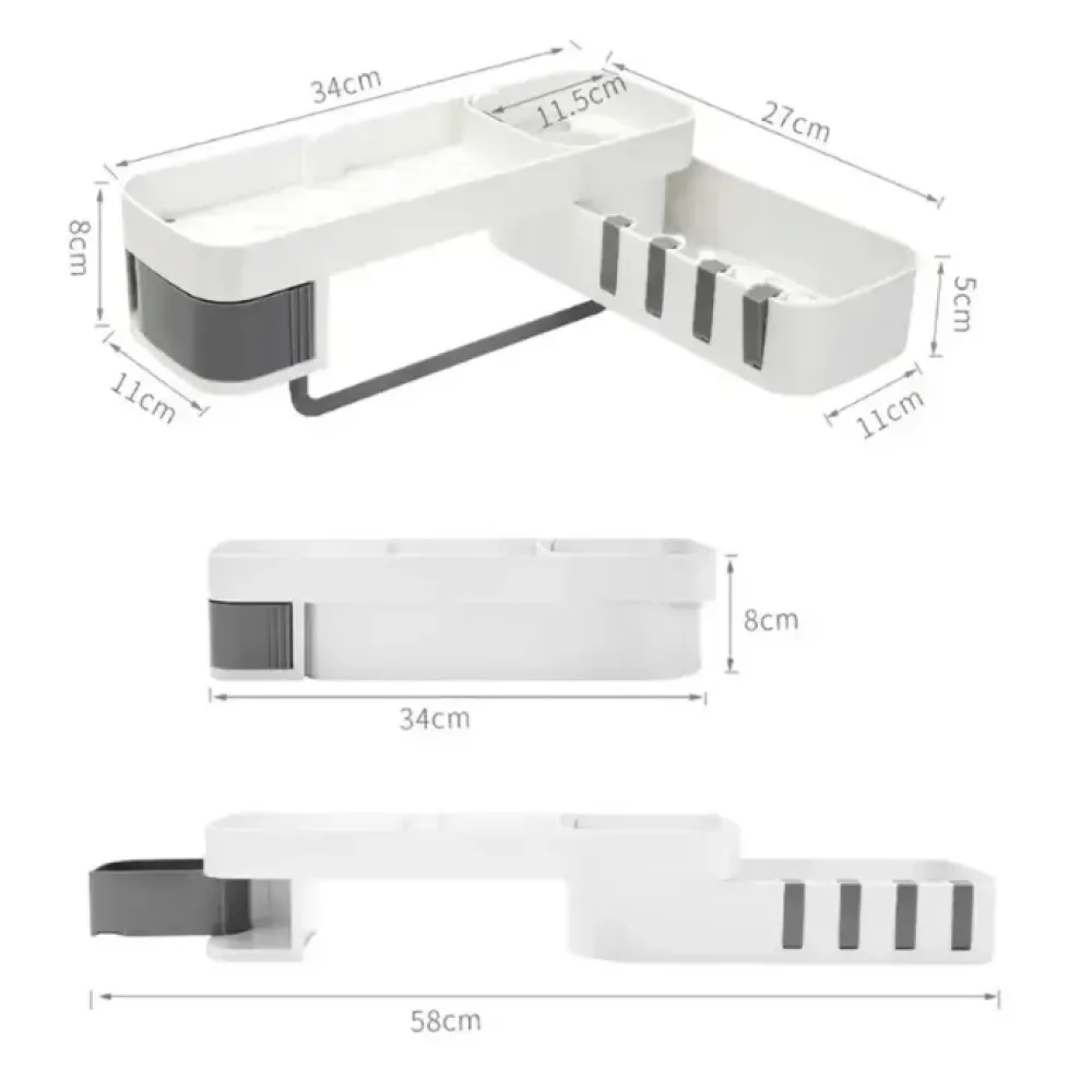 На краю стойки есть 4 крючка, которые можно использовать для подвешивания полотенец или мочалок, их также можно сложить и спрятать, когда они не используются.