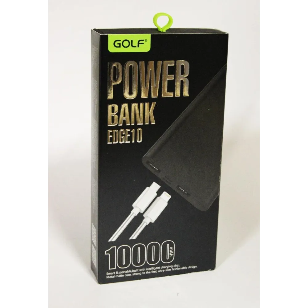- Удобное,компактное зарядное устройство Повер Банк GOLF Edge 10 10000 mAh значительно продлит время работы всех Ваших гаджетов и решит проблему отсутствия постоянного источника питания именно в то время,когда это будет необходимо:на природе,отдыхе,рыбалке,при длительных поездках!