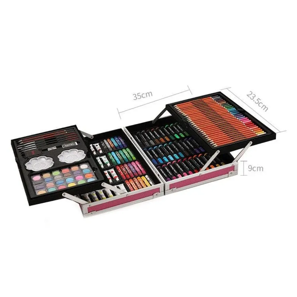 Набор для рисования из 144 предметов - это настоящая мастерская юного художника! В художественном наборе вы найдёте всё необходимое для создания красивых рисунков и художественных картин: широкую палитру фломастеров, карандашей, масляных красок и пастели, восковых мелков и акварельных красок, а также множество аксессуаров и полезных мелочей.