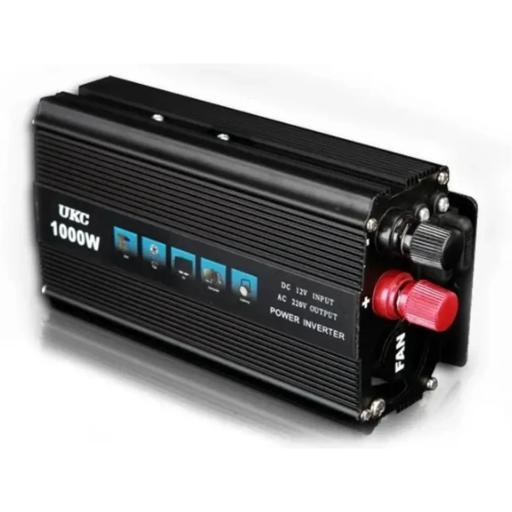 Прибор предназначен для преобразования электричества из 24В в 220В. Позволяет подключать нагрузку до 1000Вт. Например: видеокамеру, телефон, ноутбук, различную аудио- и видеотехнику, электробритву и прочие электроприборы. Корпус сделан из алюминия, в задней части есть вентилятор для охлаждения прибора. Спереди расположены розетка, кнопка вкл/выкл и выход USB с напряжением 5В, а также световые индикаторы режимов работы. Прибор можно подключать как через прикуриватель, так и напрямую к клеммам аккумулятора при помощи зажимов.