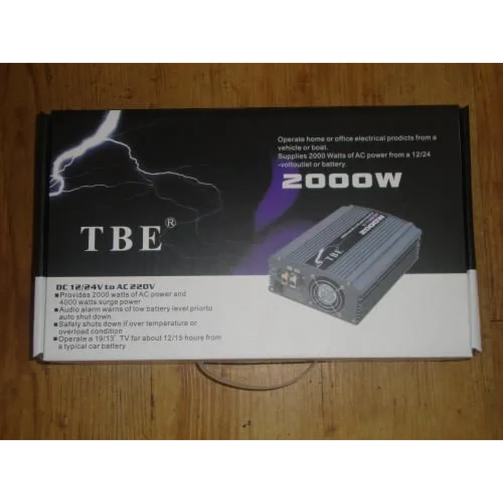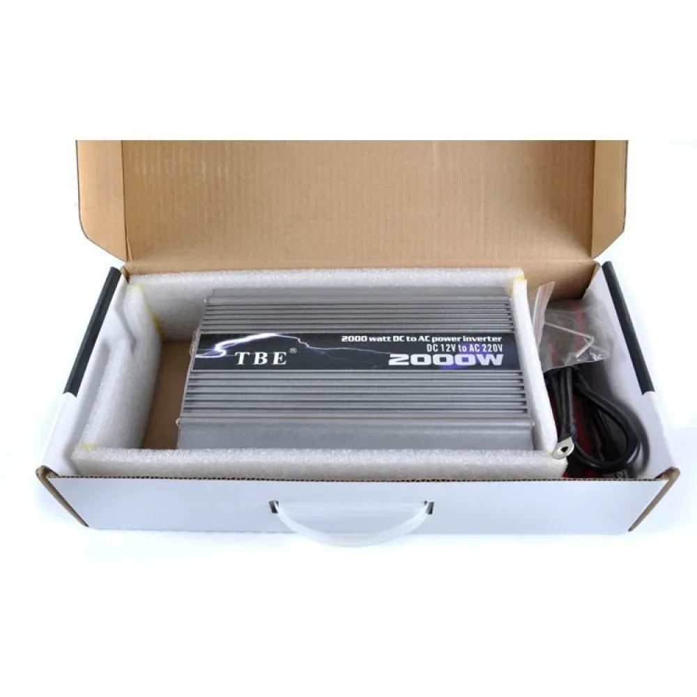 Портативный преобразователь постоянного напряжения в переменное (инвертор DC/AC), способный обеспечить питание нагрузки с потреблением мощности до 2000W, позволит владельцам автомобилей, находящимся в дорожных условиях, сделать возможным работу их бытовой аудио-видео техники, компьютера, ноутбука и других портативных устройств.В качестве источника входного напряжения для данного преобразователя используется бортовая сеть автомобиля (через аккумулятора/генератора).Встроенная схема защиты предохраняет устройство от преждевременного выхода из строя в случаях: низкого и высокого входных напряжений, неправильной полярности, короткого замыкания во входных цепях питания подключаемого устройства.