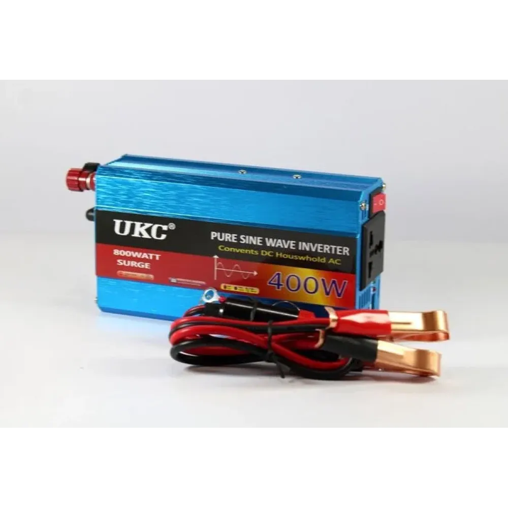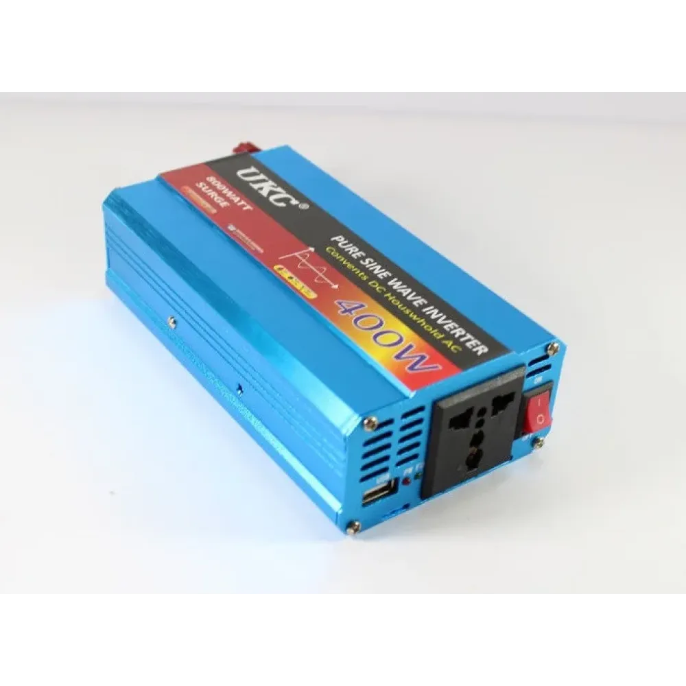 Преобразователь AC/DC 400W Синусоида предназначен для преобразования электричества из 12В в 220В. Позволяет подключать нагрузку до 400Вт. Например: видеокамеру, телефон, ноутбук, различную аудио-видеотехнику и прочие электроприборы. Корпус сделан из алюминия, на задней части расположены клеммы, а также вентилятор для охлаждения прибора. Спереди расположены розетка, кнопка вкл/выкл, а также световые индикаторы режимов работы. Прибор можно подключать напрямую к клеммам аккумулятора или через прикуриватель.