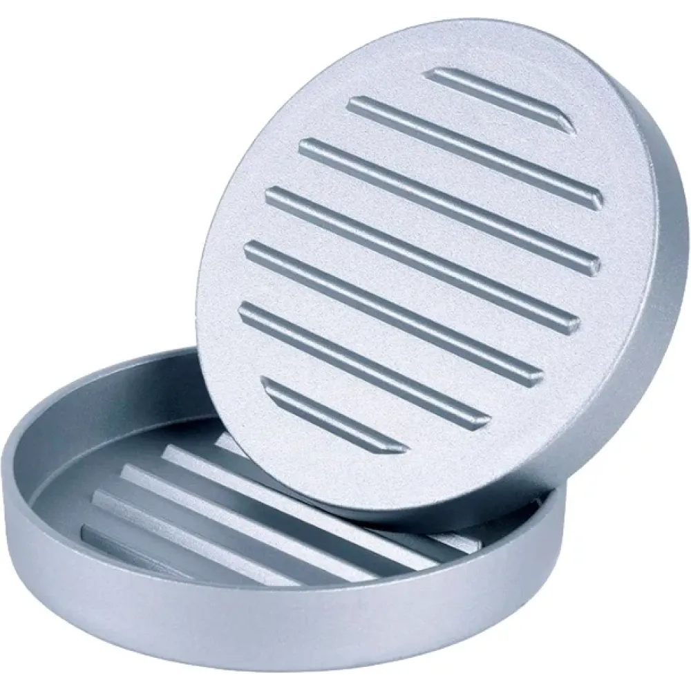 Пресс для гамбургеров и котлет металлический Пресс для котлет - быстрый и простой способ сформировать котлету, идеально подходящую к гамбургеру. Пресс изготовлен из стали. Удобная ручка выполнена из дерева. Использовать данную форму легко, достаточно положить подготовленный фарш на нижнюю часть формы, закрыть верхней частью и прижать. Вы получаете идеальную котлету классического вида. Для удобства извлечения котлеты из пресса можно использовать пергаментную бумагу....
