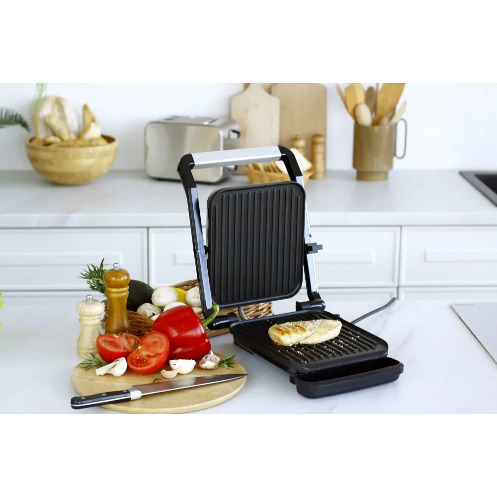 Готовьте полезные блюда из мяса, рыбы и овощей у себя дома с помощью гриль-пресса MG-371. Пользоваться им максимально просто: световые индикаторы подскажут, когда приступать к готовке, а антипригарное покрытие панелей не даст продуктам подгореть. Эта модель оснащена регулятором температуры для быстрой и удобной готовки. Особому комфорту в работе способствуют несколько уровней открытия гриль-пресса, а также специальная емкость, в которую стекает лишний жир, снижая калорийность продуктов.