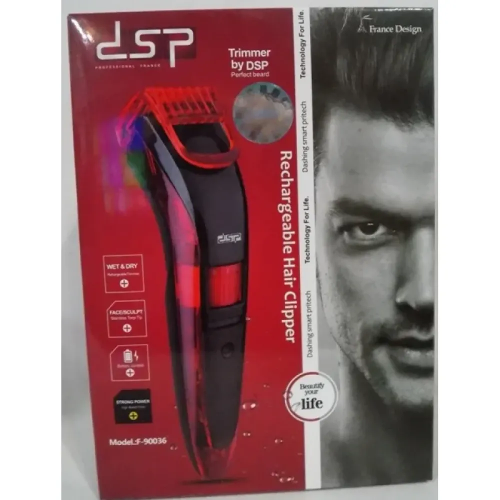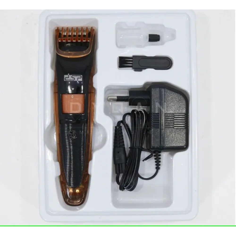 Машинка для бритья DSP модель F90036. Профессиональная машинка . Заряжается от Питания и аккумулятора. Имеет головки из нержавеющей стали, которые не раздражают кожу. Различные уровни для длины реза от 0,5 мм до 10 мм, которые подходят коже, не повреждая ее и эргономичный дизайн
