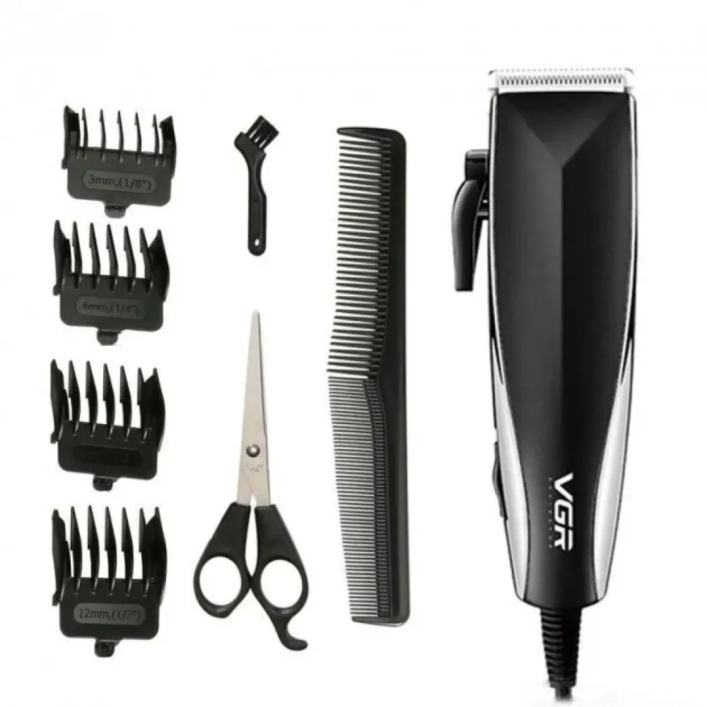 Профессиональная машинка для стрижки волос от сети VGR V-033 USB Pro, 9 Вт с насадками 3-12 мм и ножницами в комплекте
