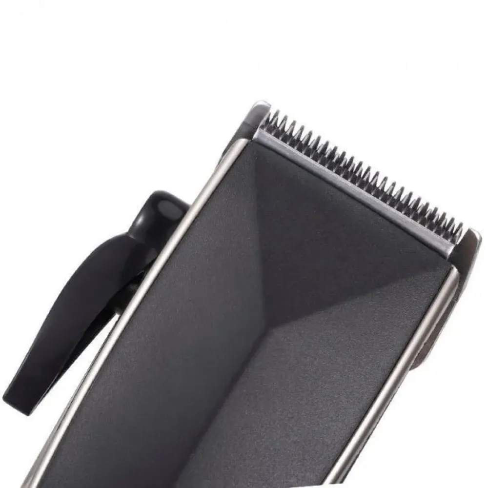 Производителем предусмотрено четыре насадки, позволяющие получить нужную длину волос в диапазоне от 3 до 12 мм, и рычажок на корпусе для более точной регулировки, что дает возможность создавать разнообразные стрижки.