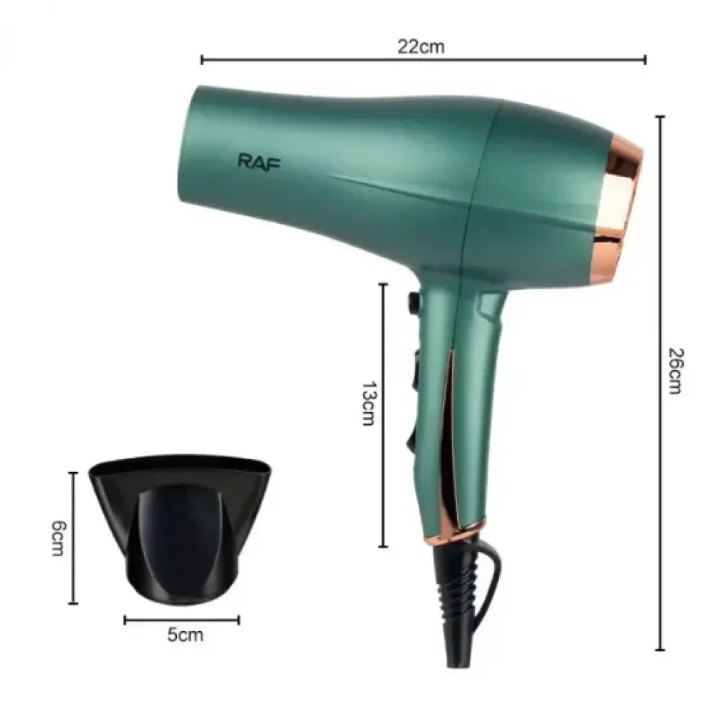 Функциональный и удобный фен RAF отличается красивым дизайном и доступной ценой с большим набором функций. Отличается высоким качеством и надежностью, бережно сушит волосы. Это мощный и универсальный инструмент, с помощью которого можно не только высушить, но и аккуратно уложить ваши волосы.