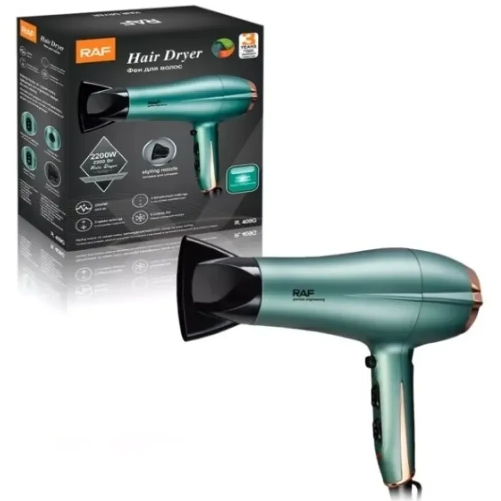 Фен RAF-R.409G мощный, при этом невероятно легкий прибор, станет важным аксессуаром в Вашем арсенале средств по уходу за волосами! Используя фен можно не только моментально высушить волосы, но в тоже время придать желаемую форму и объем прическе.