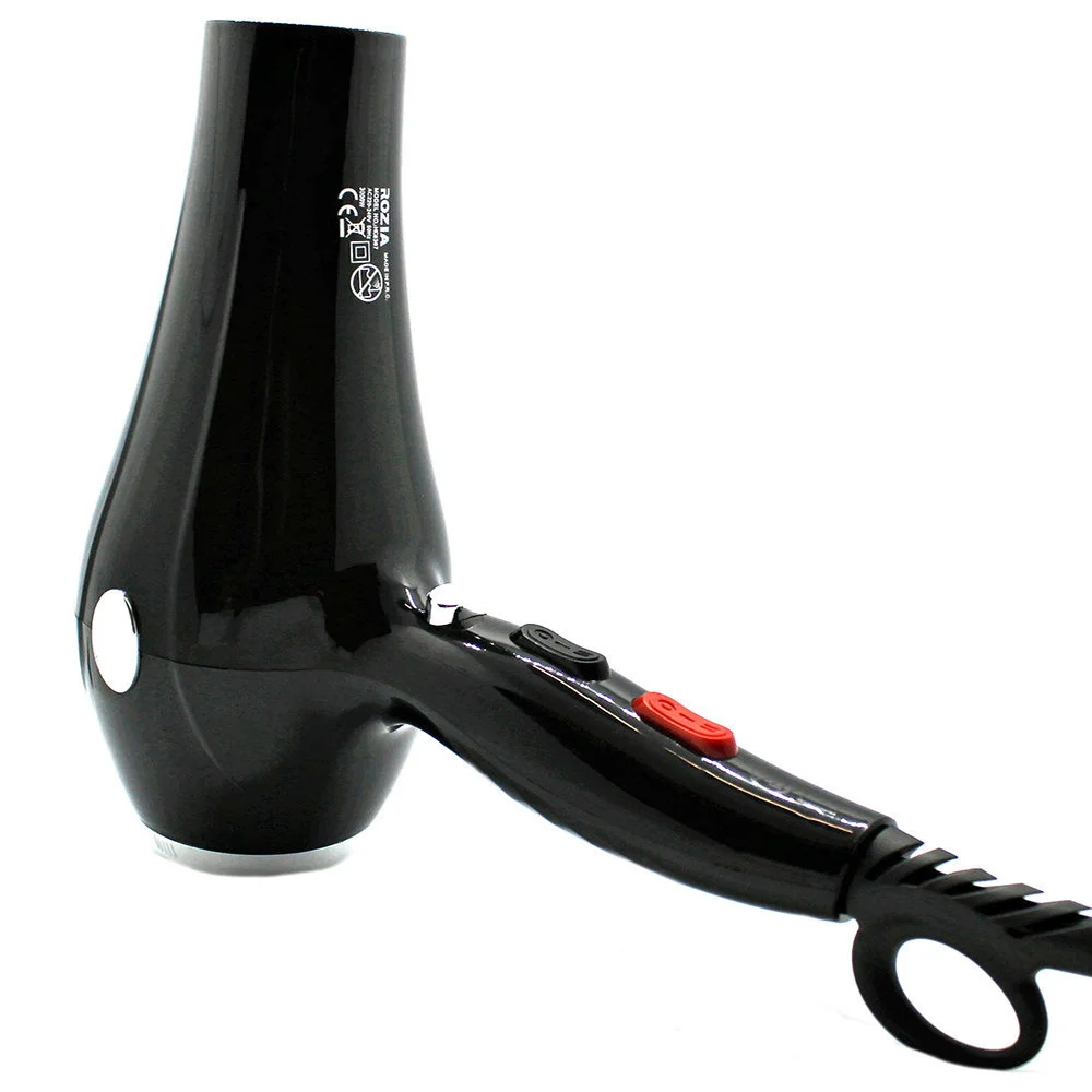 Фен имеет дополнительную функцию ионизации, что уменьшает вредное воздействие горячего воздуха на волосы. ROZIA HC8307 предназначен для бытового использования. Корпус прибора выполнен из безопасного термоустойчивого пластика. Шнур защищен от перекручивания.
