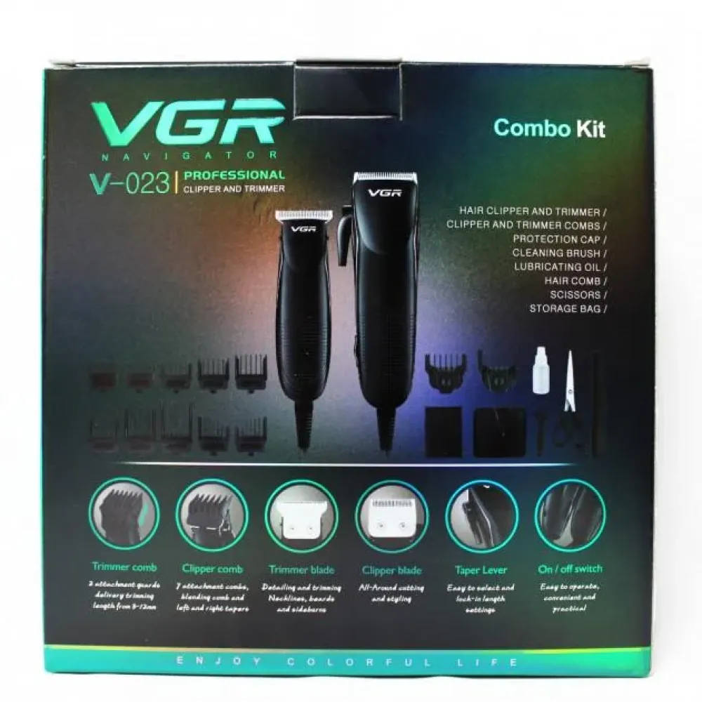 Профессиональный набор для стрижки 2 в 1 Машинка для стрижки волос с насадками + Триммер для коррекции VGR V-023 это прекрасный набор для парикмахера или для человека, который стрижет всех родных и близких дома :)