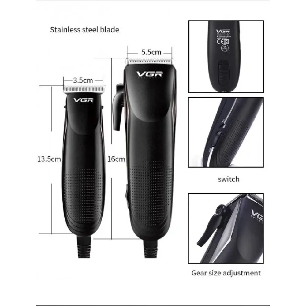 Профессиональный набор для стрижки 2 в 1 Машинка для стрижки волос с насадками + Триммер для коррекции VGR V-023