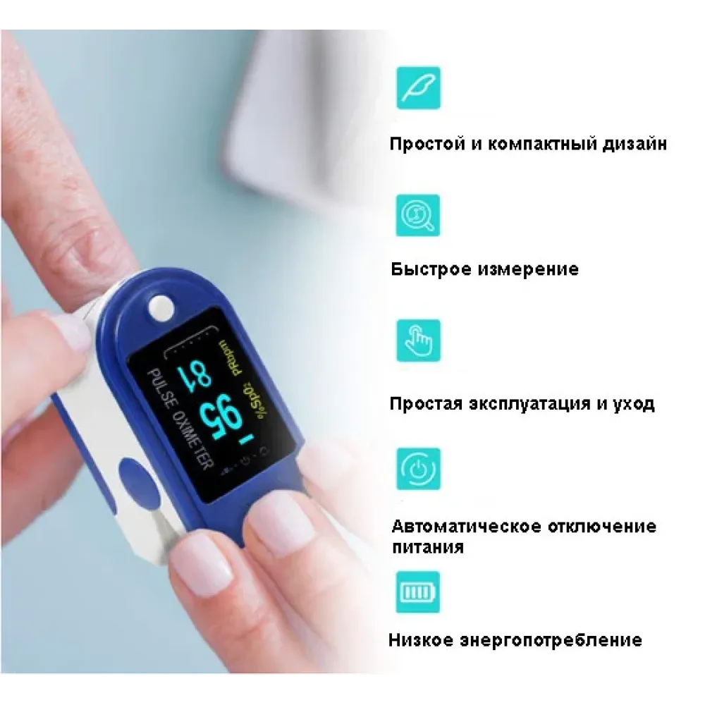 Очень прост в использовании, датчик похож на прищепку, которая надевается на палец и через 10–20 секунд показывает уровень кислорода и пульс. Только лучше выполнить следующие условия: