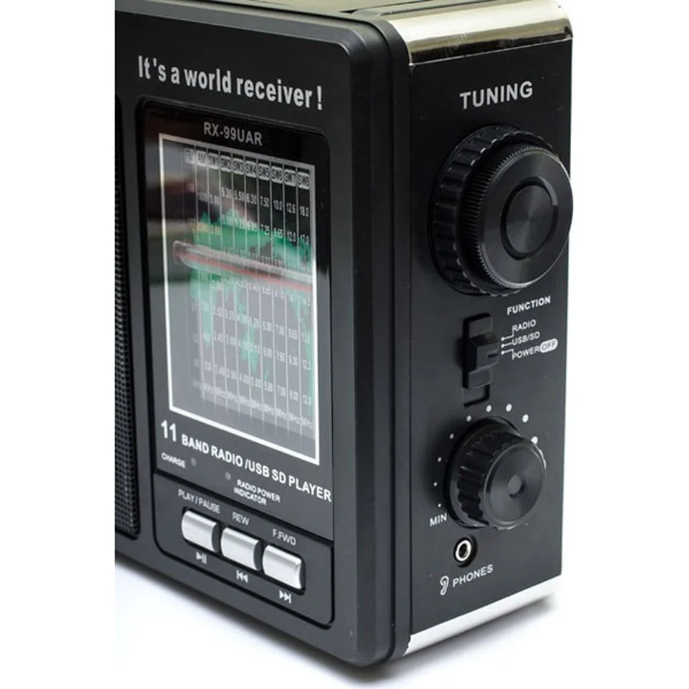 Диапазон волн: FM 88 ― 108 МГц, AM6 530-1600 КГц, SW (1-9): 2.4-22.0 МГц