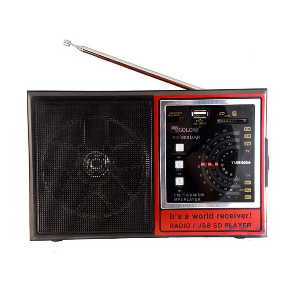 Радиоприемник GOLON RX 002 UAR с высокой чувствительностью, хорошо подходит для зон с неуверенным приемом. Динамик с хорошим звучанием. Возможность использования флеш памяти и карты памяти SD для прослушивания музыки.