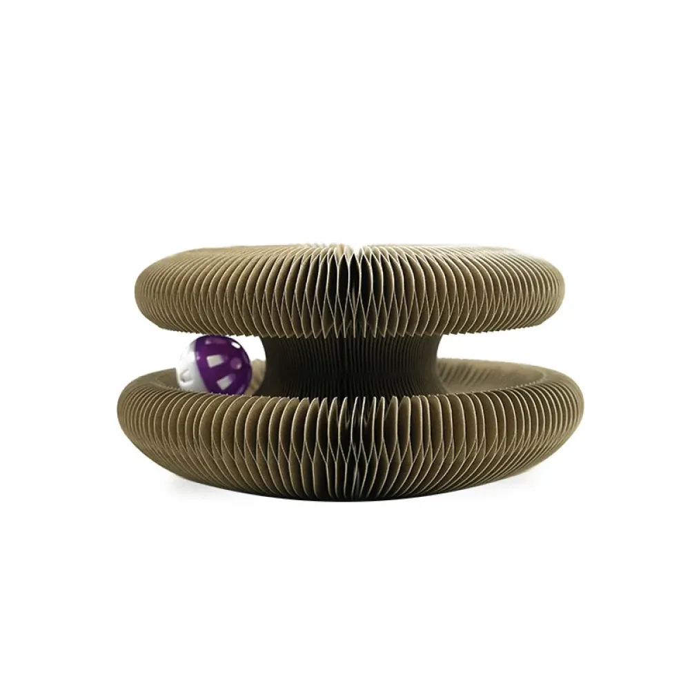 Интерактивная игрушка для кошек и когтеточка в одном! Когтеточка гофра с мячиком Magic Organ Cat - это уникальное развлечение, которое не даст вашим любимым питомцам заскучать. Эта игрушка-когтеточка представляет собой гибкий трек из картона, по которому коты могут погонять мячик.