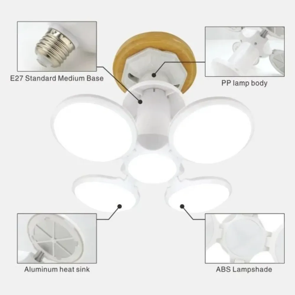 Раскладная светодиодная LED лампа – светильник в патрон складывающаяся лампочка с лопастями Football UFO LED Lamp 40Вт E27
