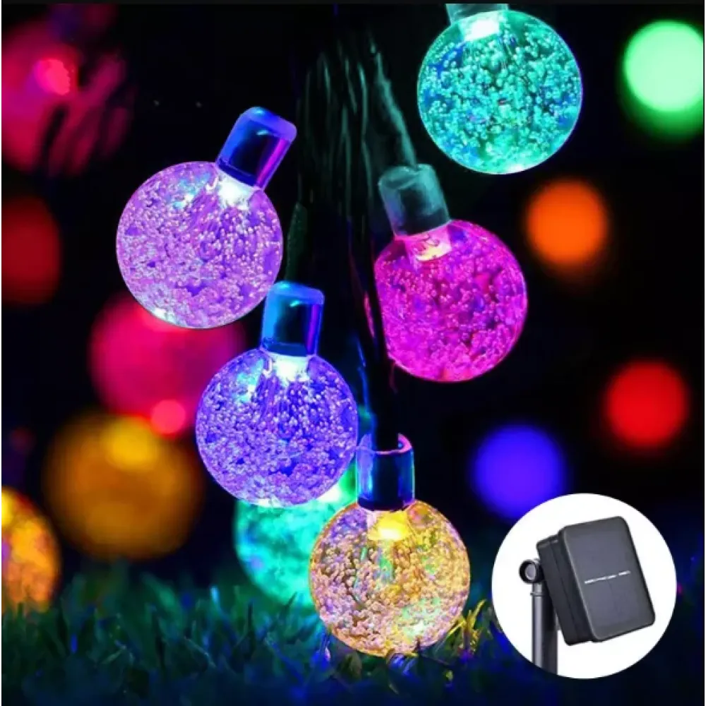 Светодиодная гирлянда для наружного использования оснащена встроенным аккумулятором и солнечной панелью, обеспечивая автономное освещение. Хрустальные шарики с красным, желтым, синим и зеленым свечением добавят ярких красок вашему саду, патио или клумбе. Гирлянда работает от солнечной энергии и автоматически включается вечером благодаря встроенному датчику света.