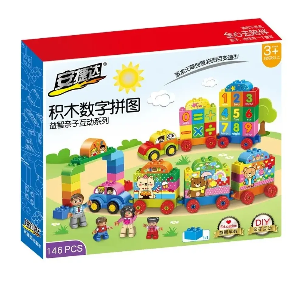 Набор на 146 деталей, с помощью которых легко изучать цифры, основы арифметики и просто возить в паровозе "друзей".