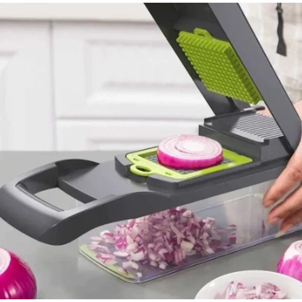 С помощью этой овощерезки со съемным контейнером вы сможете легко и быстро нарезать продукты тонкими кольцами, соломкой и кубиками.Работать с овощерезкой очень удобно. Она не скользит на поверхности, поскольку корпус овощерезки оснащен специальными резиновыми ножками.