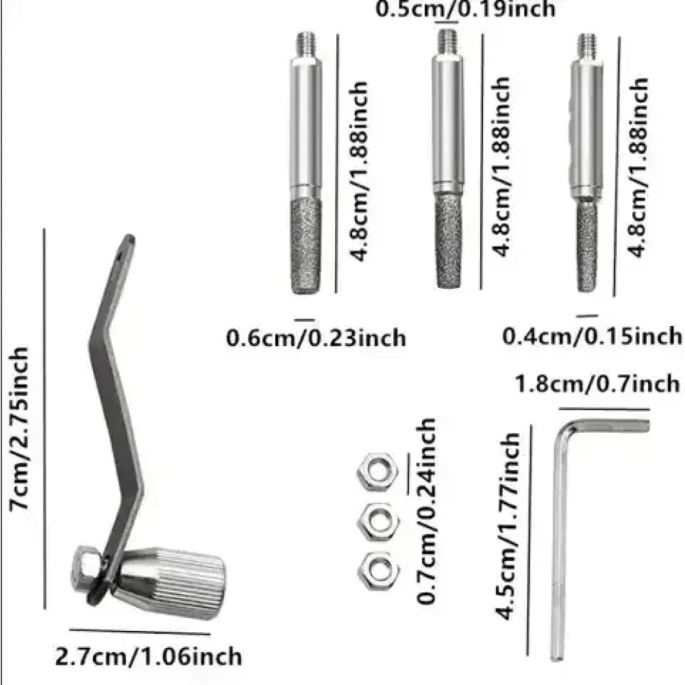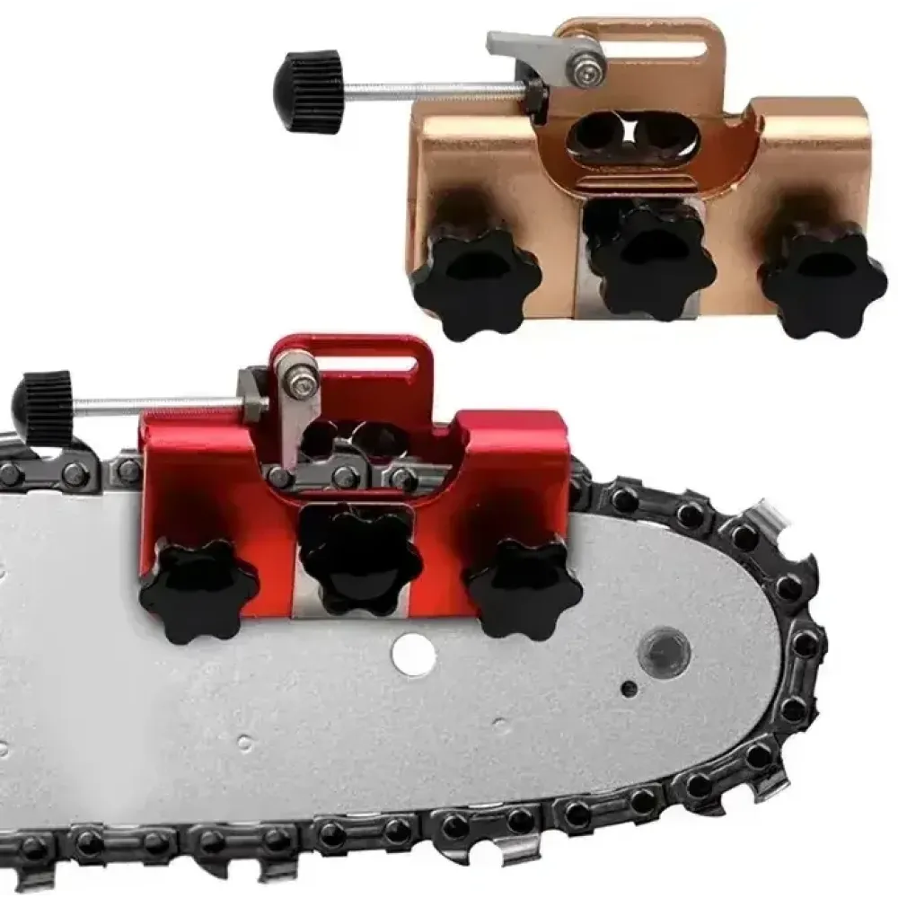 Точилка оснащена тремя алмазными насадками, которые обеспечивают точную и равномерную заточку звеньев. Простая система фиксации и регулировочный рычаг делают использование максимально удобным — даже без опыта вы легко приведёте цепь в рабочее состояние. Инструмент совместим с большинством стандартных цепей бензопил и электропил.
