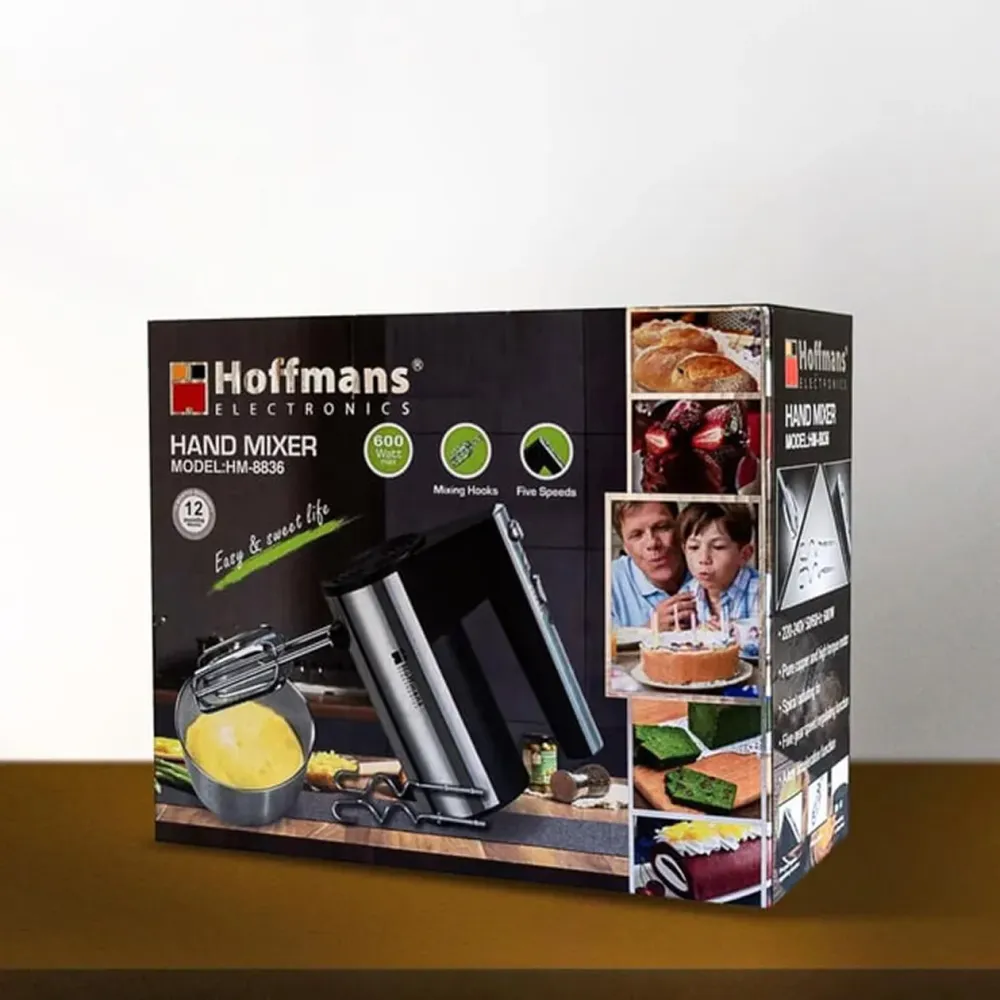 Ручной электрический миксер Hoffmans HM-8836 600 Вт • Кухонный миксер с 5 скоростями и 4 насадками для взбивания и замеса теста