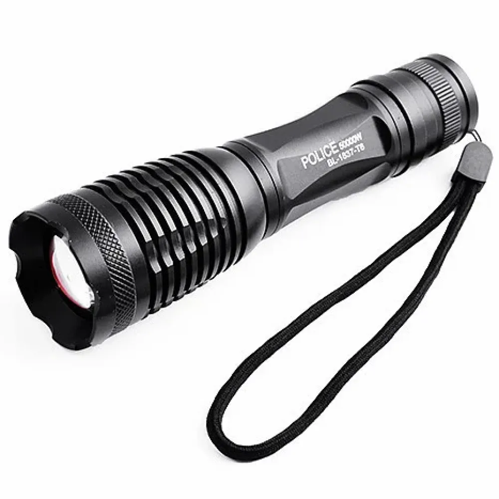 Вследствие выигрышно спроектированному корпусу и текстурированному отражателю из бериллиевой бронзы, фонарик BL-1837-T6 успешно отражает тепло от алюминиевого корпуса, несмотря на свои небольшие габариты и мощный светодиод Cree XM-L T6. Расположенная с торца, резиновая кнопка включения на 5-ть режимов, позволяет ставить включенный BL-1837-T6 на стол, линзой вверх. Фокусировка осуществляться с помощью подвижной головки фонаря. В комплектацию входит отдельных блок зарядки для аккумуляторов 18650, что допускает использование 2-ого дополнительного источника питания, когда в тоже время основной заряжается.