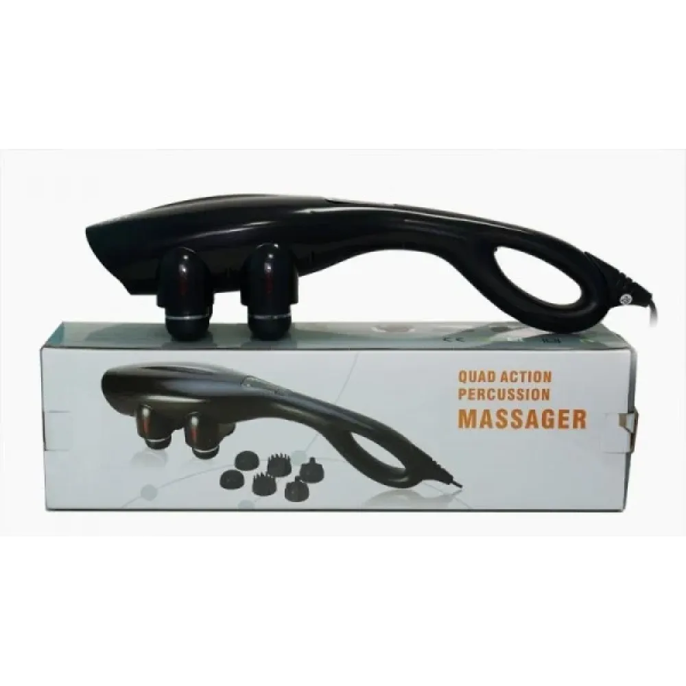 Вибрационный ручной массажер Quad action Черный с 3 насадками для спины и всего тела вибромассажер 5 скоростей