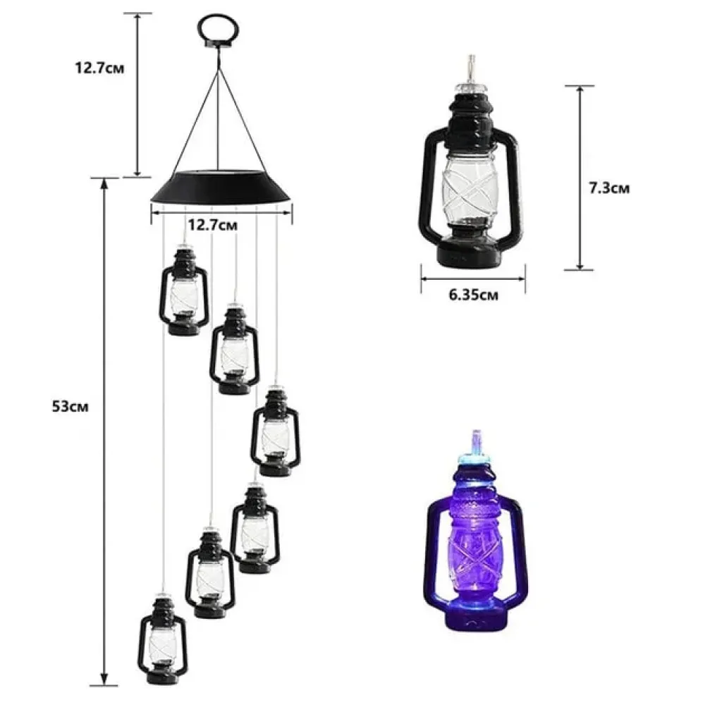 Превратите свой сад в настоящую сказку с нашей подвесной садовой лампой с фонариками! Этот стильный декоративный светильник создает неповторимую атмосферу благодаря шести разноцветным светодиодным фонарикам, которые мягко и ярко освещают пространство, добавляя уюта и волшебства. Он идеально подходит для вечерних прогулок в саду, романтических ужинов на террасе или праздничного освещения беседок и веранд.