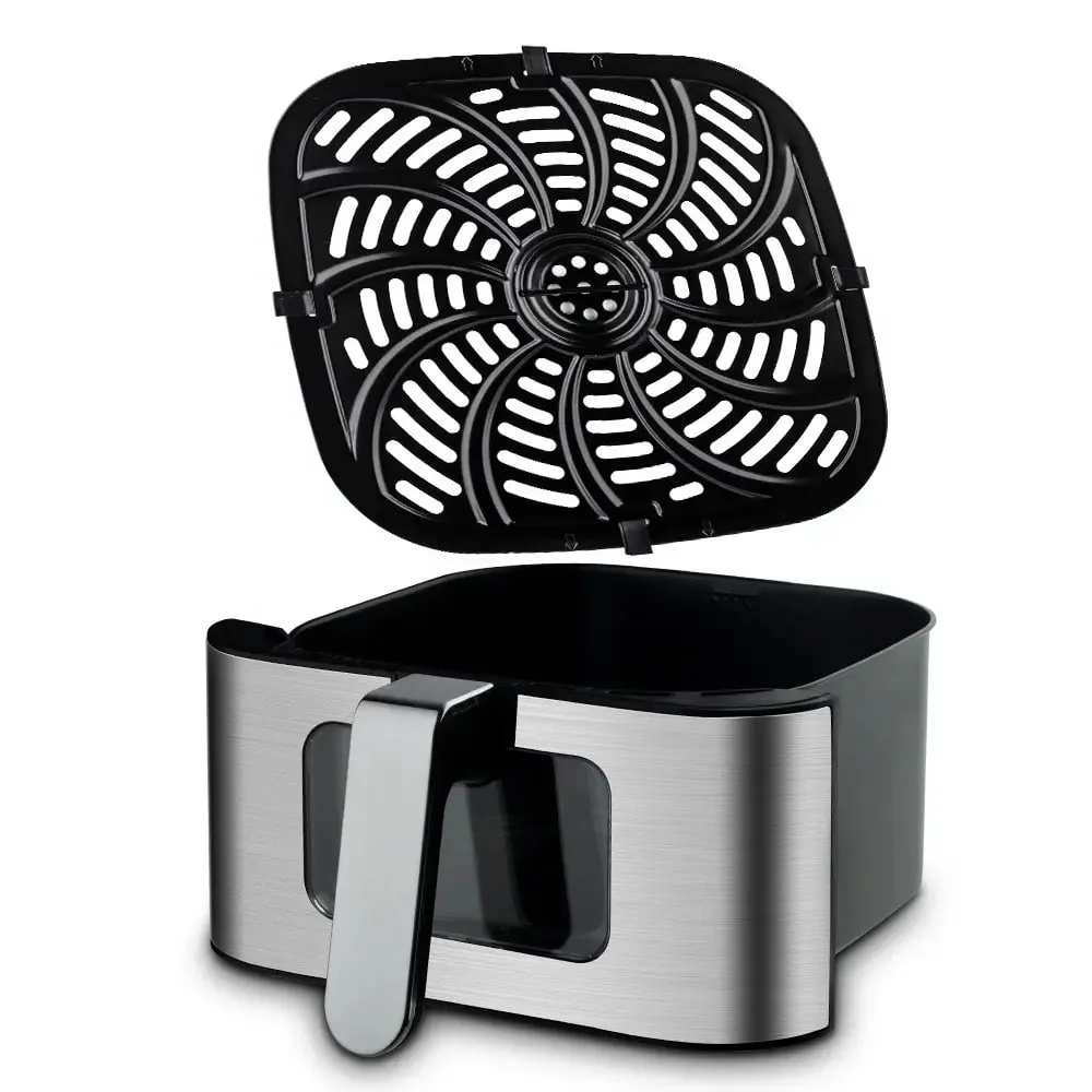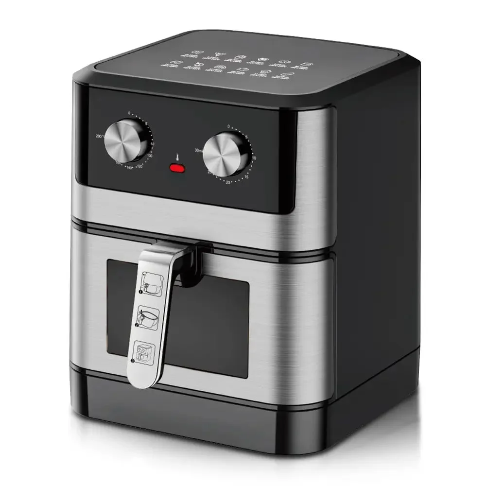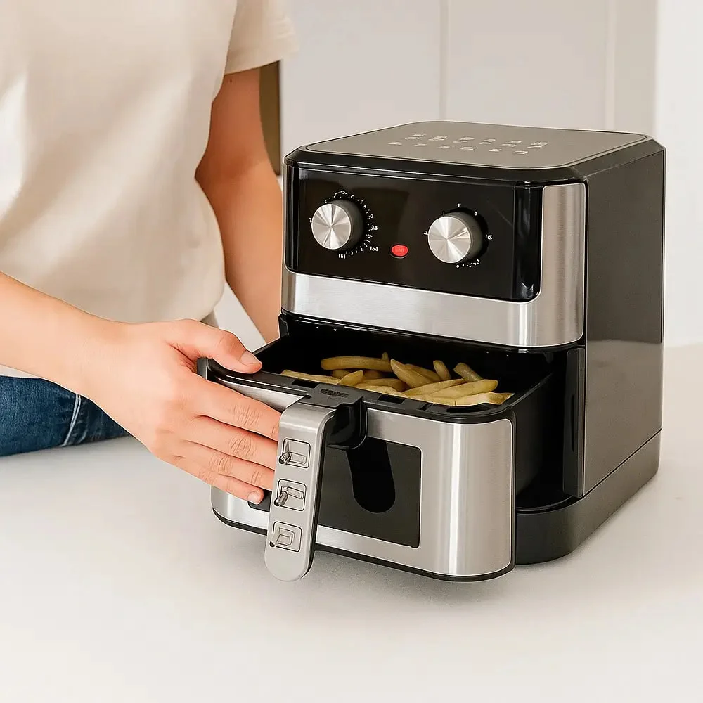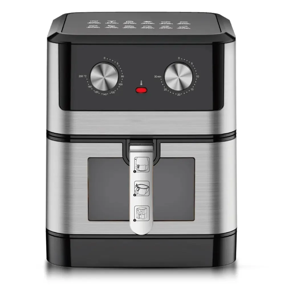 Сенсорная панель упрощает управление температурой от 80 до 200°C и таймером до 60 минут, что делает процесс приготовления удобным и безопасным. Прибор подходит для жарки, запекания, гриля и разогрева овощей, мяса, рыбы и других продуктов. Съёмная антипригарная чаша облегчает очистку, а равномерный поток горячего воздуха гарантирует хрустящую корочку и сочность внутри продуктов. Компактный и стильный дизайн экономит место на кухне и подходит для ежедневного использования.