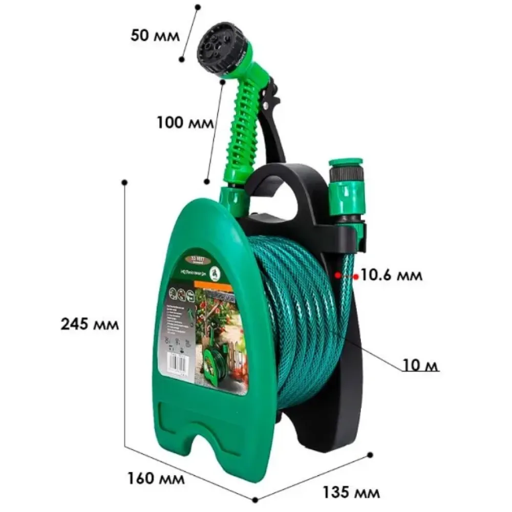 ✔ Прочный трехслойный ПВХ-шланг – выдерживает давление воды и не перегибается.