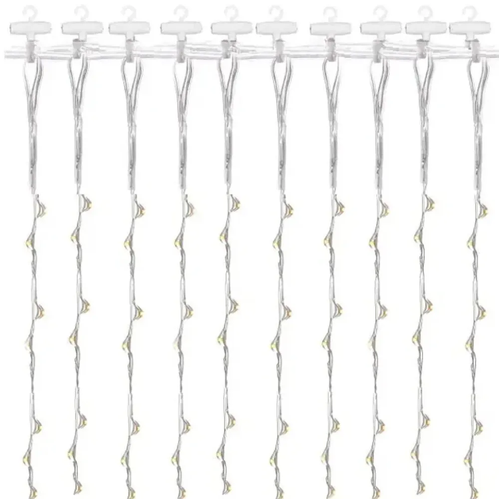 Гирлянда имеет большие размеры 3×3 метра, а установка занимает не более 5 минут благодаря комплекту специальных крючков для подвеса. Тёплый белый цвет создаёт комфортную и уютную атмосферу для вас и вашей семьи.