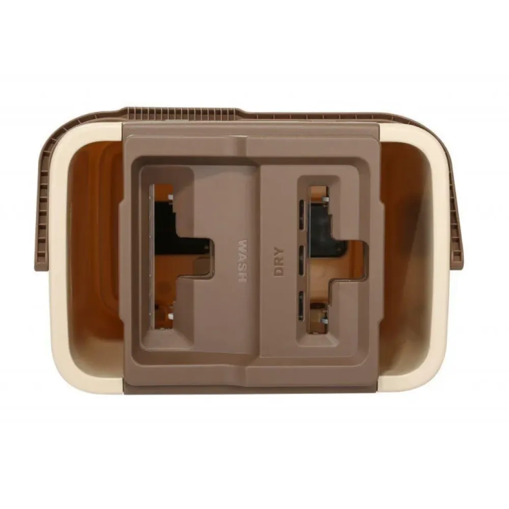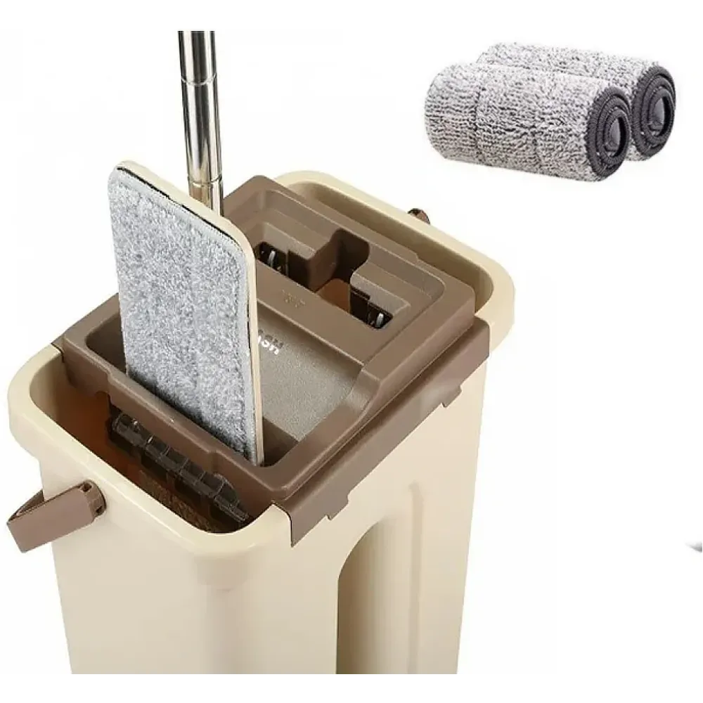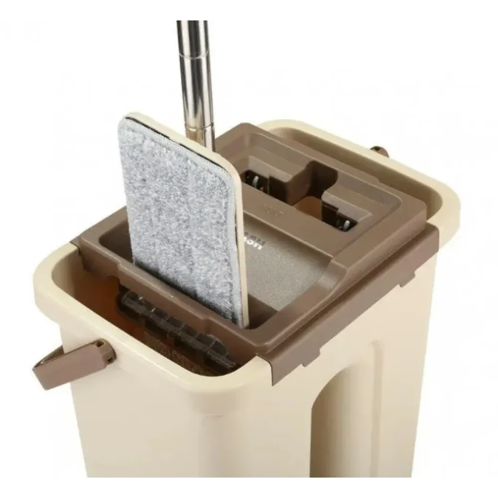 Благодаря ведру со специальной крышкой вы с легкостью вымоете и выжмете тряпку, не прикасаясь к ней руками и не снимая ее со швабры. Также в комплект входят две насадки для швабры из микрофибры.