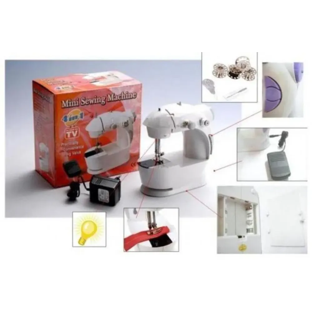 Швейна міні машинка портативна Mini Sewing Machine SM-202A 4 в 1 з педаллю і адаптером живлення Sew Whiz PR4 незамінна в домашньому господарстві! Багато хто з нас стикаються з проблемою починки улюбленого одягу, особливо якщо вона куплена дуже давно. Пошкодити одяг можна як зручно, від звичайних розхождений швів, до настоящих рваных частей. Але ви тільки подумайте, скільки грошей вийде, якщо постійно здавати одяг в майстерню? Дуже часто ремонт одягу в майстерних неякісний і зроблений тільки для видимості. Так зачем же платити багато разів, нести куда то, і потім отримати невідомий результат? Найкраще купити собі міні швейну машинку, завдяки якій ви самі з легкістю зможете відремонтувати свій одяг!