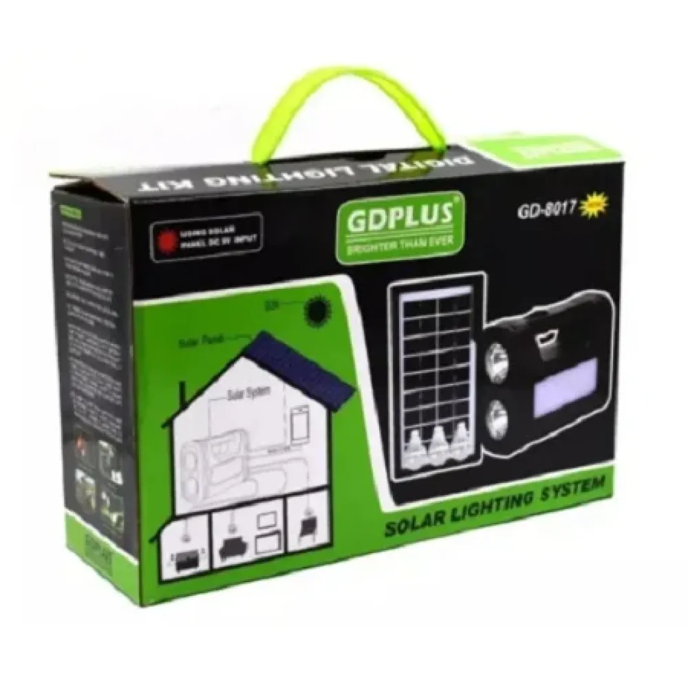 Солнечная станция GDLite GD-8017 проста в установке и использовании, а ее надежный корпус защищает от влаги и повреждений, что делает ее идеальной для активного отдыха. Независимо от того, находитесь ли вы в походе, на рыбалке или просто наслаждаетесь вечерним отдыхом на даче, GDLite GD-8017 обеспечит вам свет и зарядку, когда это необходимо. Оцените комфорт автономного освещения и зарядки с универсальной солнечной системой GDLite GD-8017!
