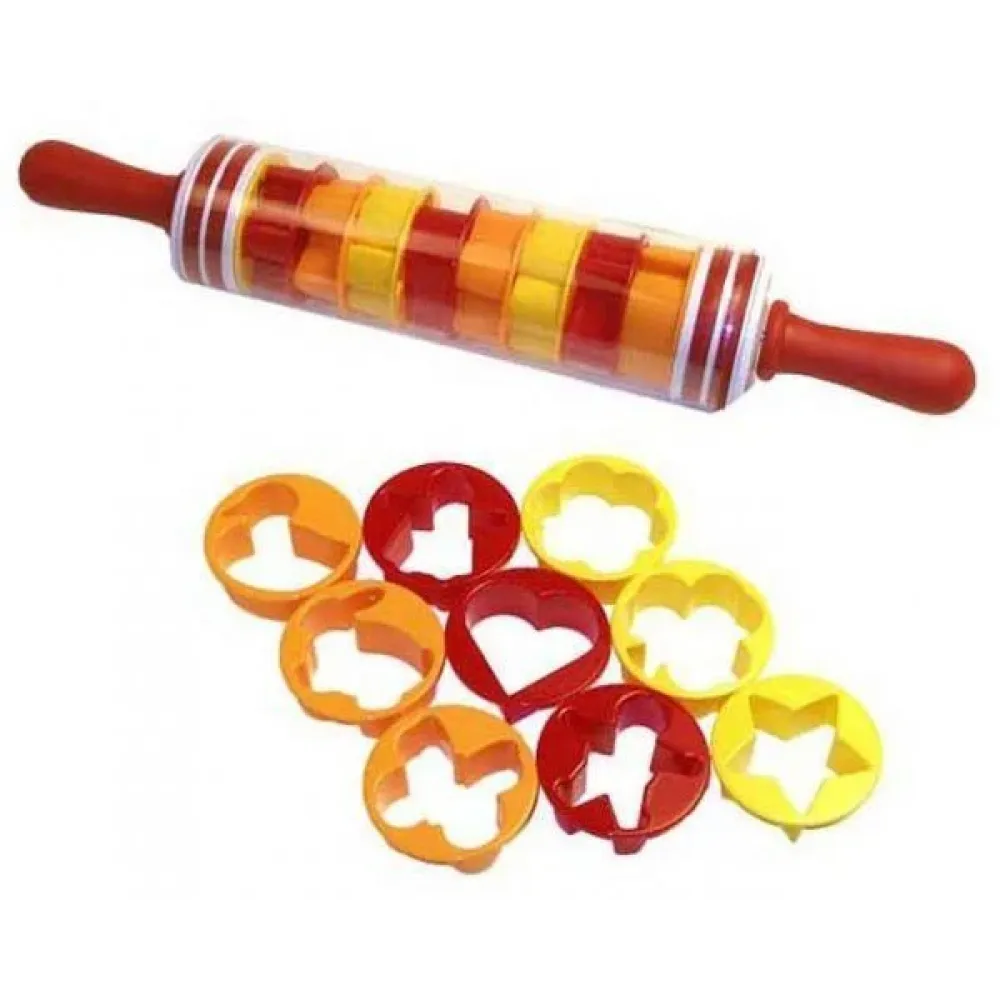 Скалка с формами Roll and Store поможет легко раскатать тесто для пиццы или рулета, а формочки для вырезания печенья придадут пряникам форму звездочек, сердечек или фигурок животных.