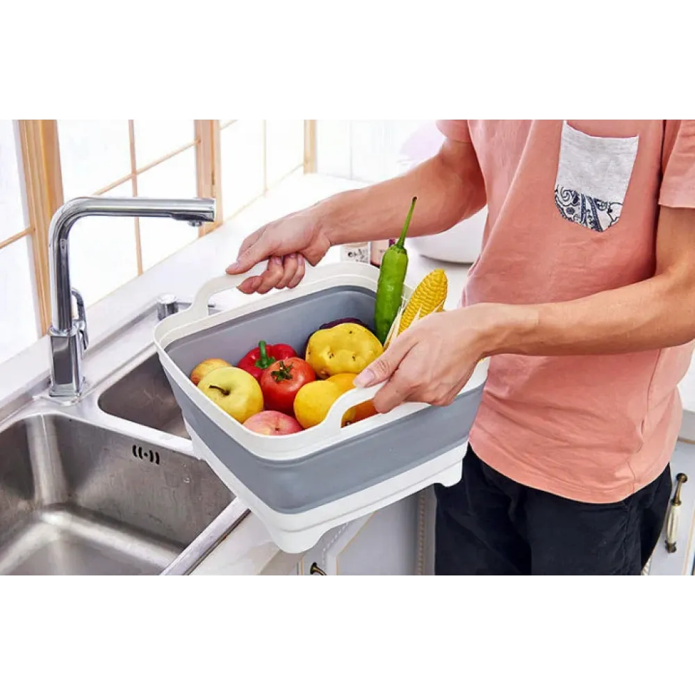 Уникальная квадратная корзина со сливом, удобными для переноски ручками, устойчивыми ножками, резиновым складным элементом и прочным пластиковым каркасом для сохранения формы решит сразу множество задач.