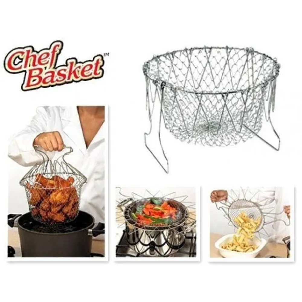 Представляем вам Складная корзина решетка для приготовления пищи Chef basket - Шеф баскет, которая заменит всю громоздкую кухонную утварь! В ней можно мыть, варить, кипятить и жарить все ваши любимые блюда.