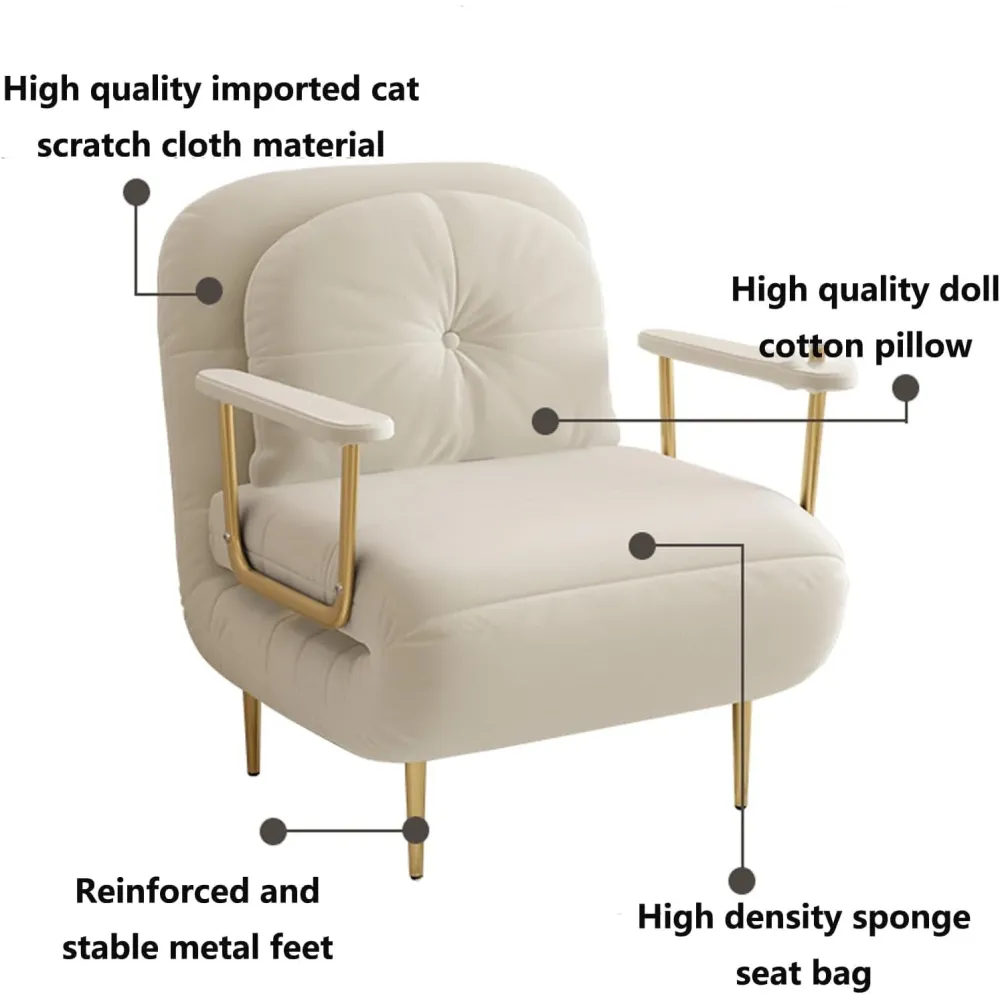 Сиденье с наполнителем из пеноматериала толщиной 10 см гарантирует комфорт во время сидения и сна. Чехол выполнен из мягкого и прочного льна — приятен на ощупь, устойчив к износу и легко снимается для чистки. Модель оснащена шестью уровнями регулировки спинки, что позволяет выбрать оптимальный угол наклона для чтения, работы, игр или отдыха.