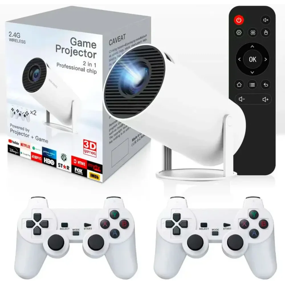 Смарт-проектор EM300 Max с 2 джойстиками • Домашний кинотеатр и игровая консоль в одном устройстве 64GB Android 12