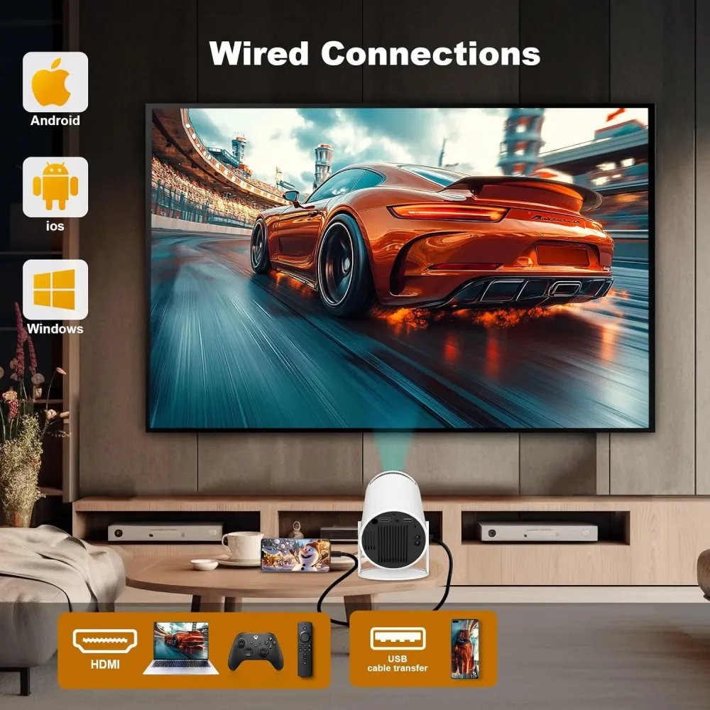Проектор HY300 PRO — это многофункциональное мультимедийное решение нового поколения, объединившее в себе мощный Android TV 11.0, поддержку 4K и беспроводные технологии WiFi 6 и Bluetooth 5.0. Устройство обеспечивает мгновенный доступ к более чем 500 000 фильмов и сериалов с платформ Netflix, YouTube, Prime Video и других — без необходимости подключения внешних ТВ-приставок. Благодаря автоматической коррекции трапецеидальных искажений и ручной фокусировке вы получаете чёткое изображение всего за пару секунд после включения