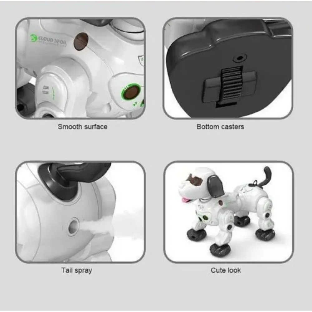 Играя с интерактивной собакой 777-602 у детей появится собственный воспитанник, которым можно управлять и задавать ему разные команды. Собачка реагирует на прикосновение, выпускает пар, ходит по лазером. Работает игрушка с помощью браслет-пульта дистанционного управления. Выполнен из качественных, безопасных материалов.