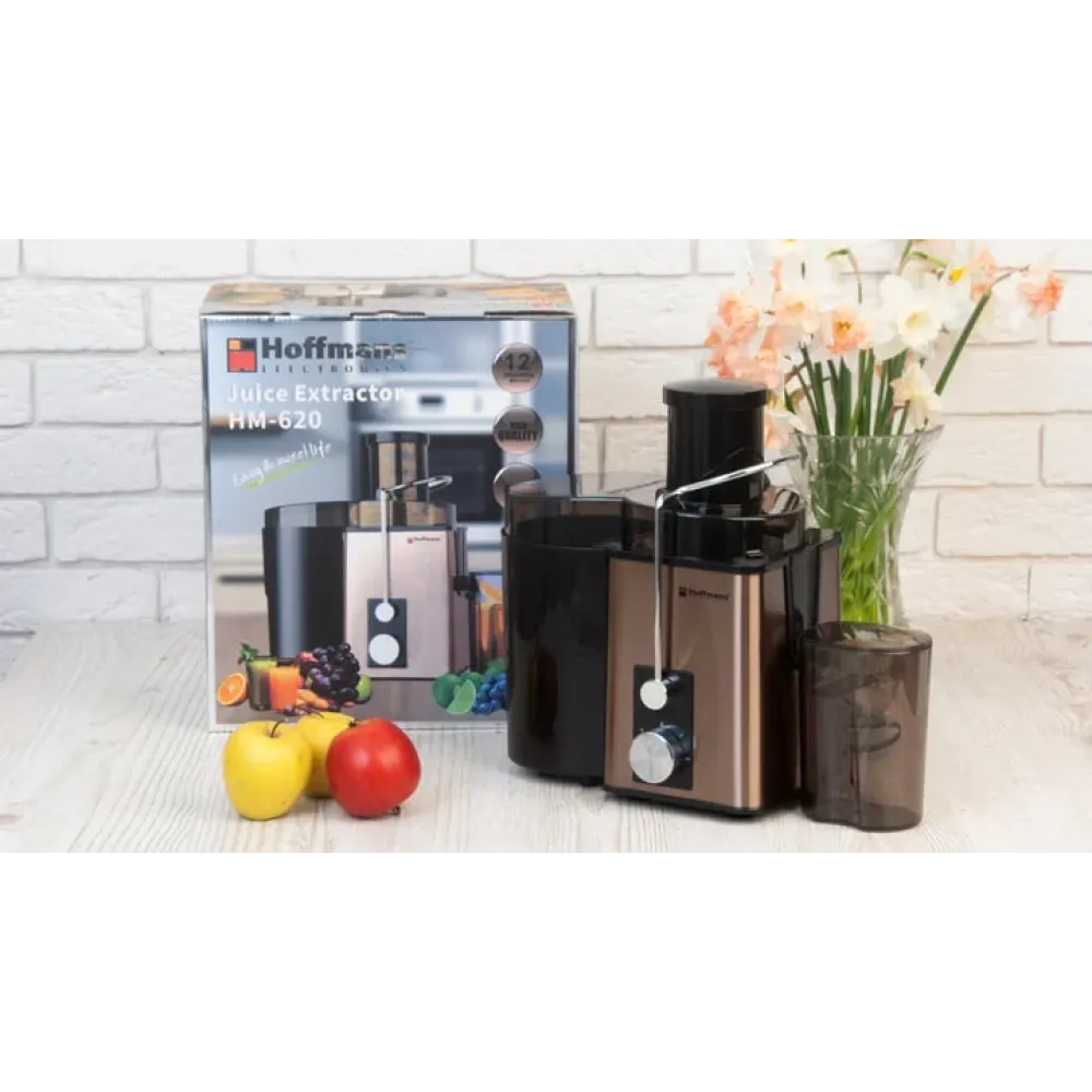 Соковыжималка Hoffmans HM-620 — это надёжное и удобное устройство, предназначенное для приготовления свежих соков, смузи и пюре. С её помощью легко получать вкусные и полезные напитки из фруктов, овощей и ягод, сохраняя максимум витаминов и натурального аромата.
